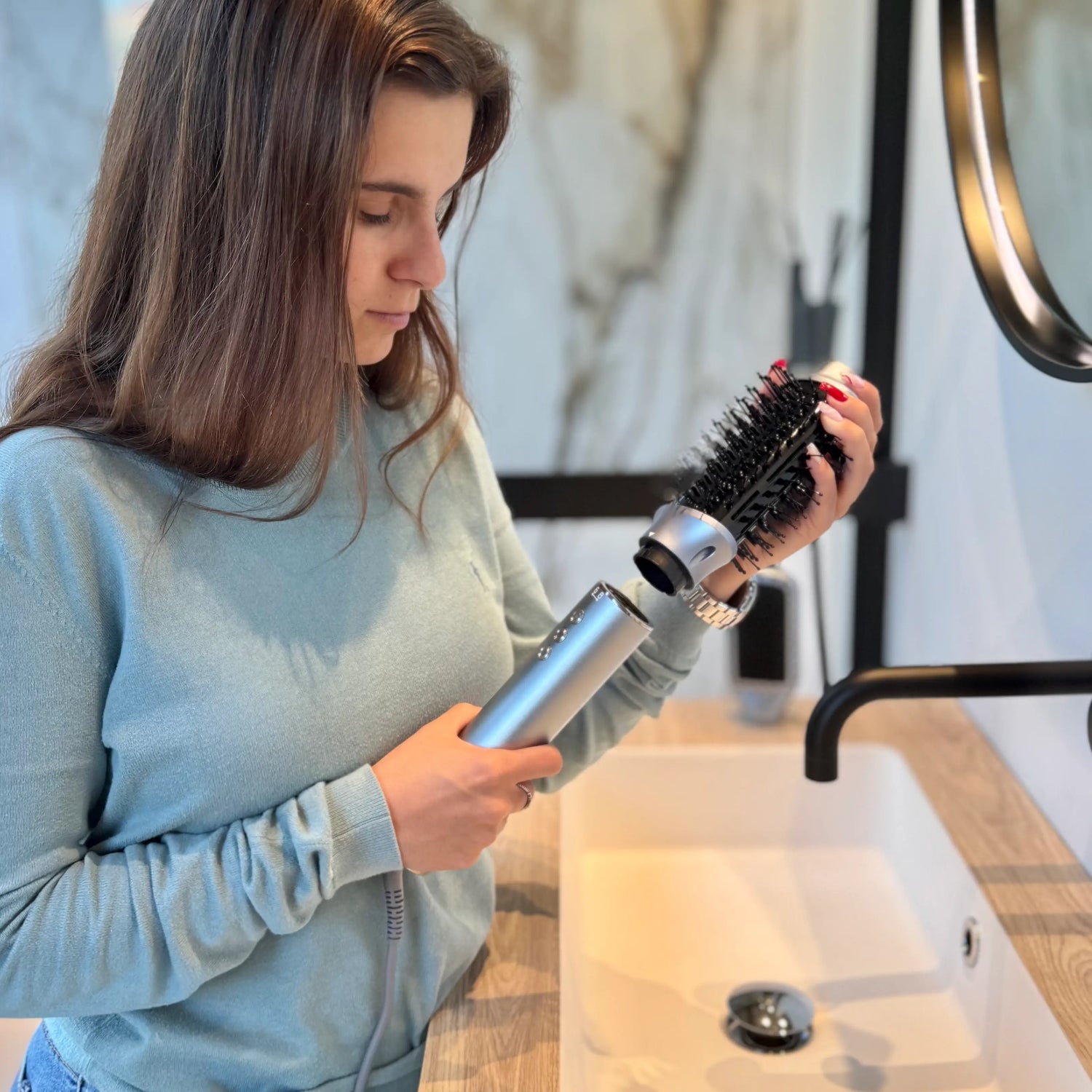 - Elige el cabezal adecuado según el estilo que quieras: secado, alisado, rizado o volumen.